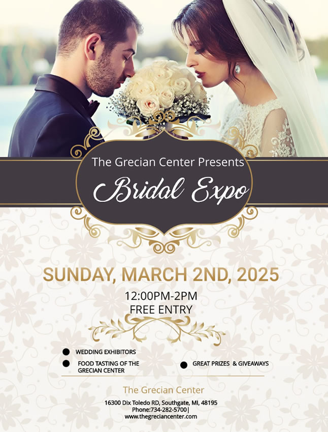 Bridal Expo presented by The Grecian Center Share Calendar Add to Calendar Add to Timely Calendar Add to Google Add to Outlook Add to Apple Calendar Add to other calendar Export to XML When: 03/02/2025 @ 12:00 pm – 2:00 pm 2025-03-02T12:00:00-05:00 2025-03-02T14:00:00-05:00 Where: The Grecian Center 16300 Dix Toledo Rd Southgate, MI 48195 USA Cost: Free Contact: The Grecian Center 734.282.5700 Event website Local Event Southgate Share FacebookTwitterEmailPrint