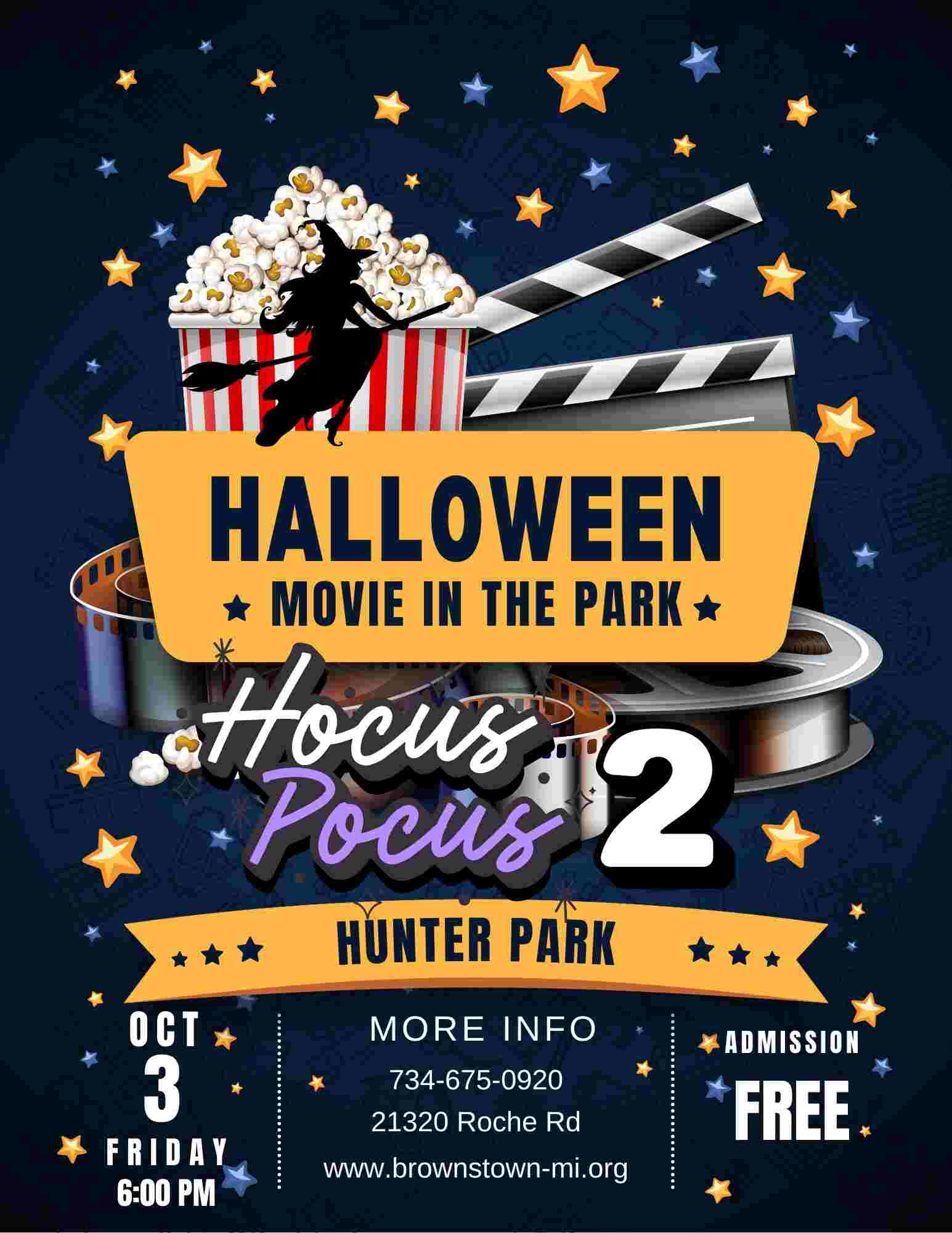 ALL are welcome! Brownstown FD will be hosting a bonfire and providing Smores, Sno-Biz Delight will be selling delicious coffee, specialty drinks and snow cones, Dr. Abed is sponsoring popcorn for the movie! We hope you can join us for Hocus Pocus 2!