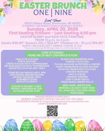 Reservation required: https://www.eventbrite.com/e/easter-brunch-the-one-nine-event-venue-tickets-1289893338699?aff=oddtdtcreator